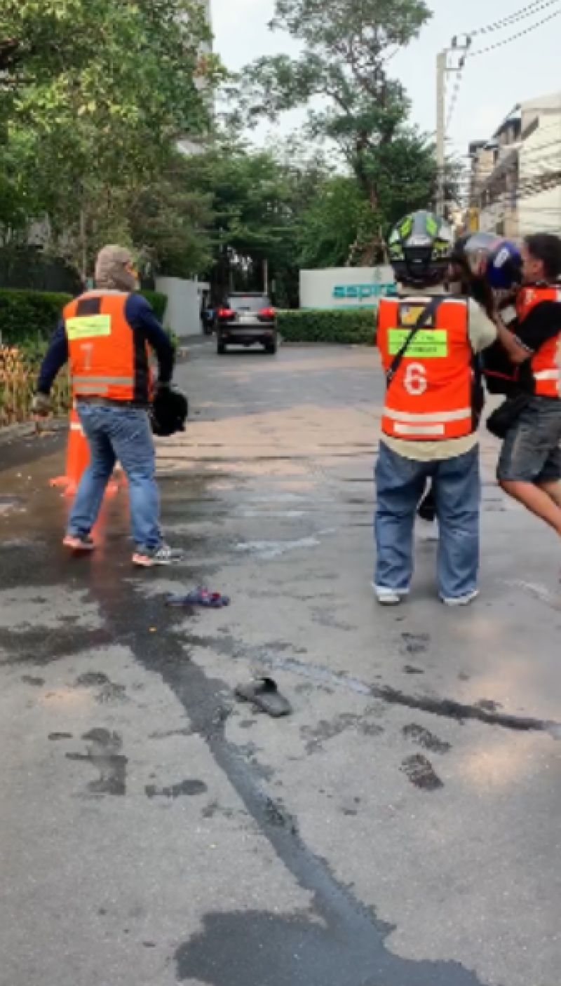 นอกจากนี้ นายเปรม อายุ 34 ปี ผู้เห็นเหตุการณ์ บอกว่า เวลาประมาณ 10 00 น สังเกตเห็น นายทัศดา แกร็บไบค์ที่อยู่ในคลิป ขี่รถจักรยานยนต์เข้าไปในคอนโดเพื่อรับผู้โดยสาร ขณะนั้นวินรถจักรยานยนต์ ประจำซอยสุขุมวิท 48 ประมาณ 1 คัน ได้ขี่รถจักรยานยนต์เข้ามาดักรอ ที่ด้านหน้าคอนโด เมื่อแกร็บไบค์รับผู้โดยสารออกมาจากคอนโด และทางวินมอเตอร์ไซค์ก็ตะโกนทำนองว่า ไม่ให้รับลูกค้า